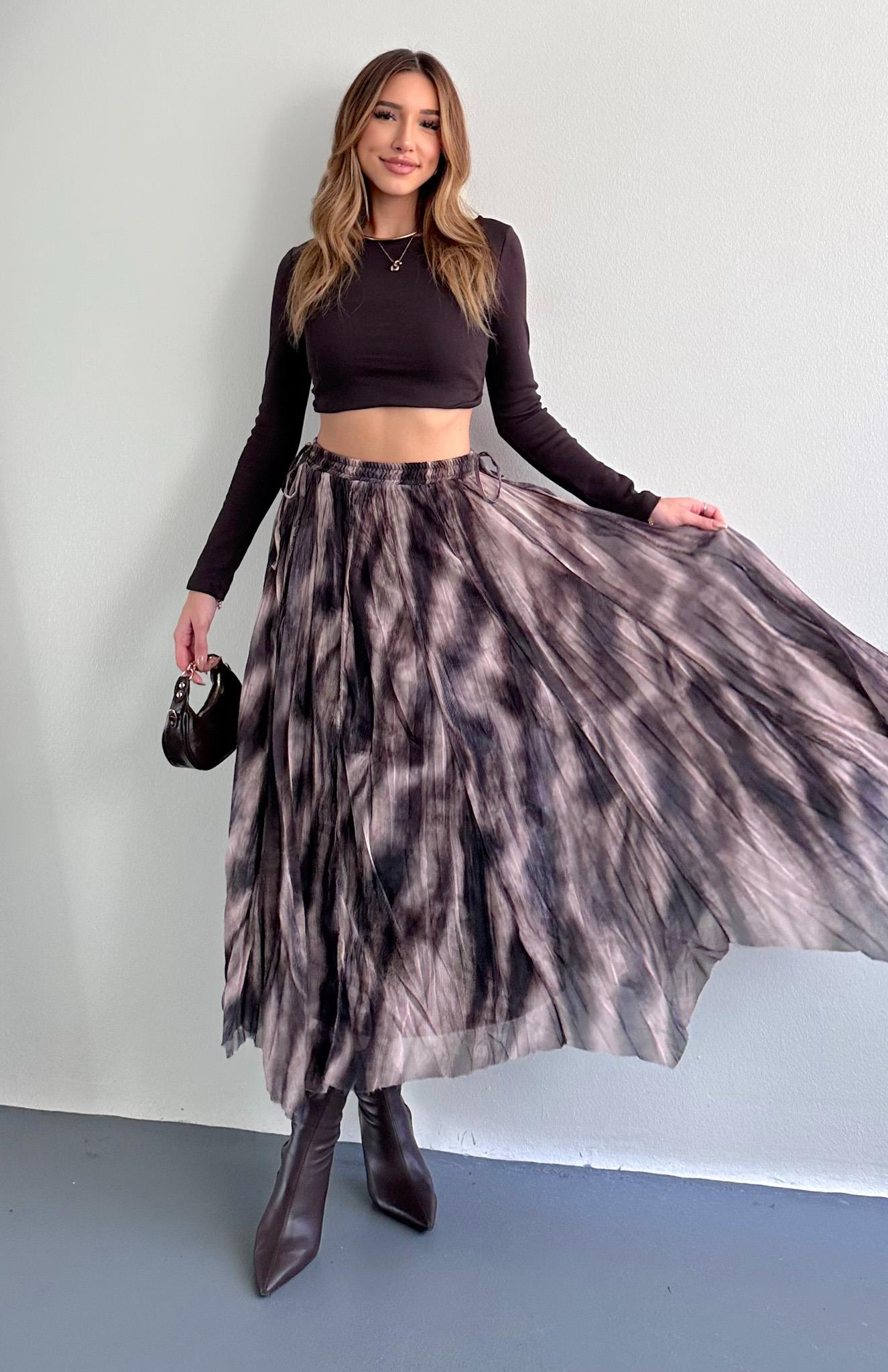 Beli Lastikli Desenli Etek Kahve-Ekru