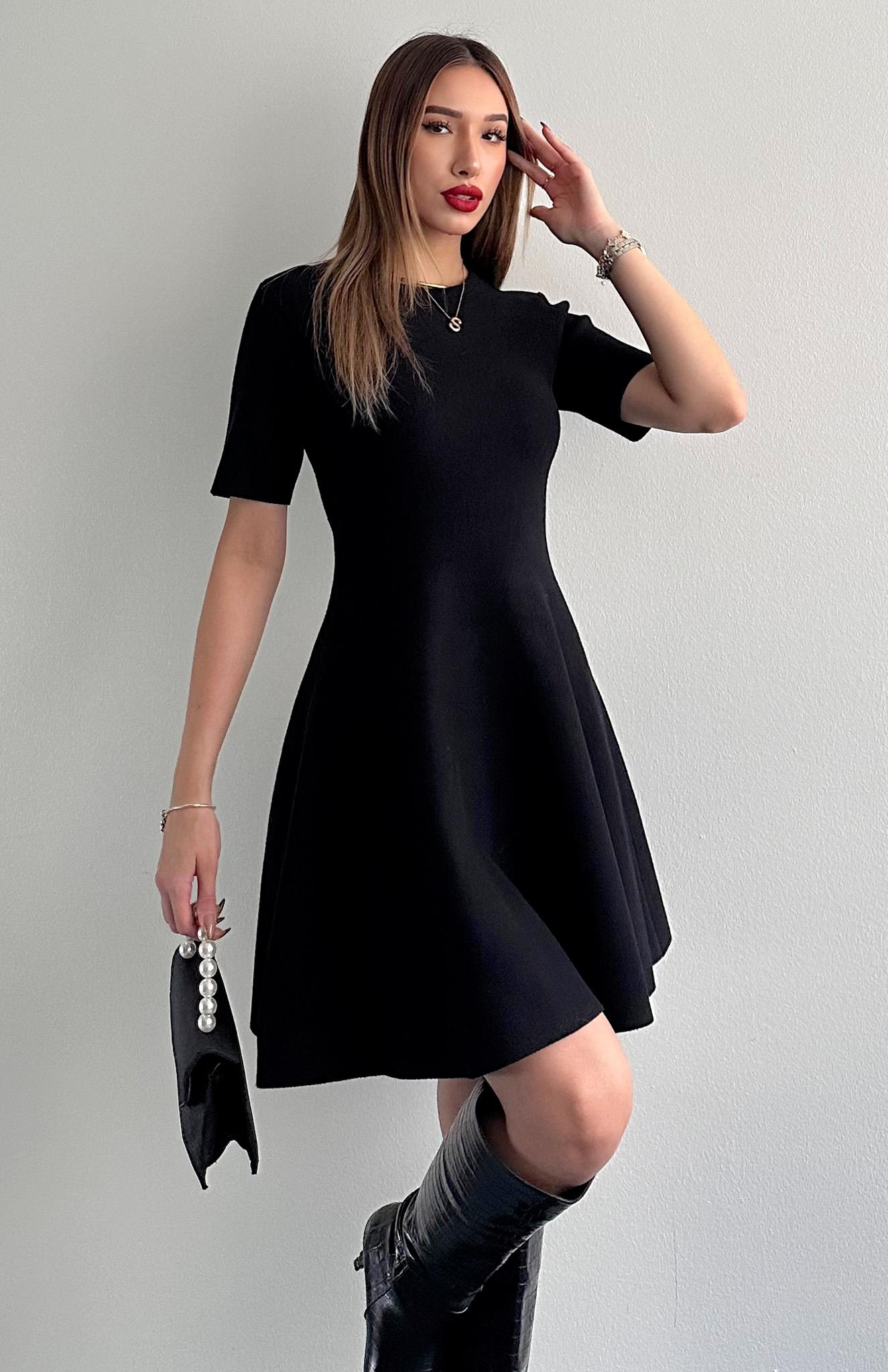 Bisiklet Yaka Volanlı Elbise SİYAH (012-90258)