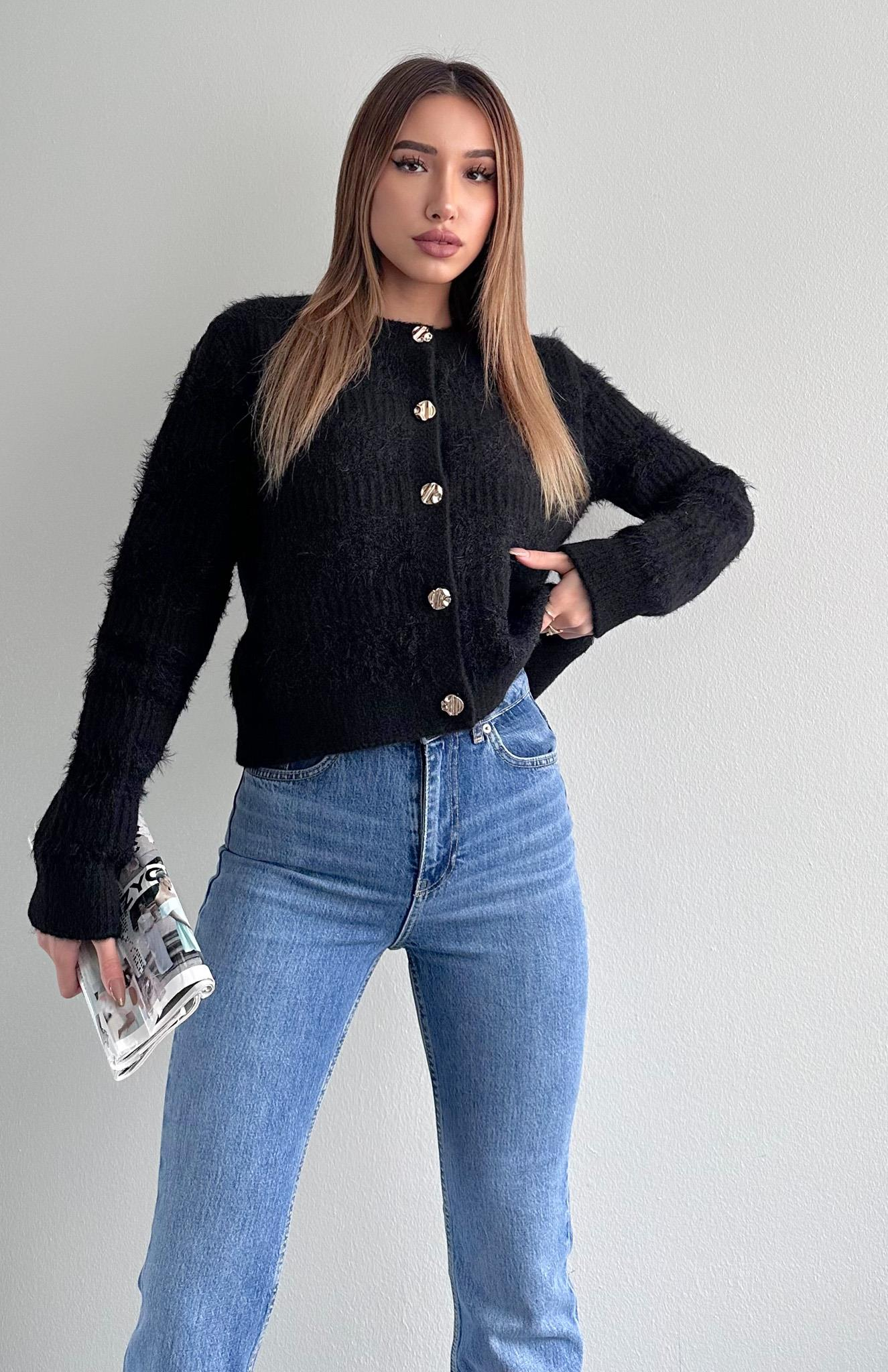 Bisiklet Yaka Yumuşak DoKulu Düğmeli Hırka SİYAH