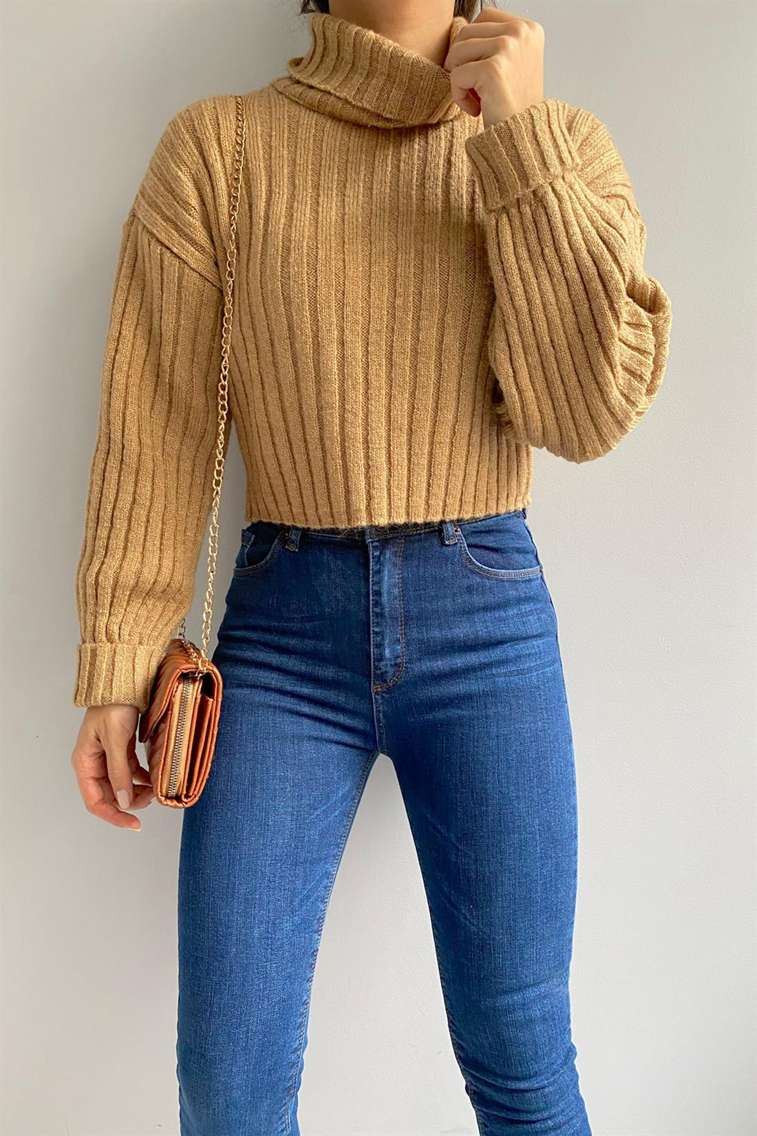 Boğazlı Kolu Katlamalı Kazak BEJ (041-E175)