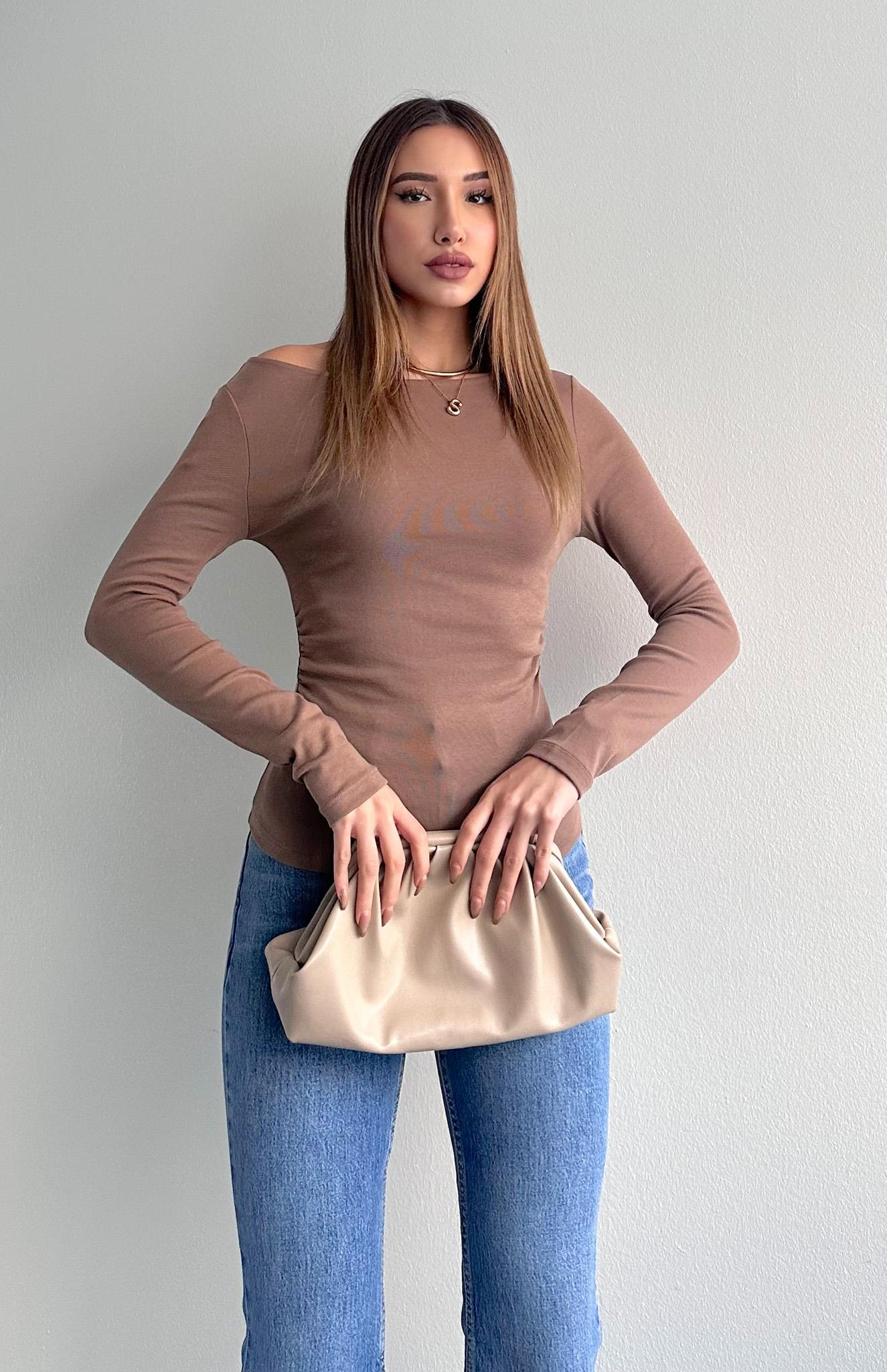 Büzgülü Kayık Yaka Bluz VİZON (012-26Y31401)