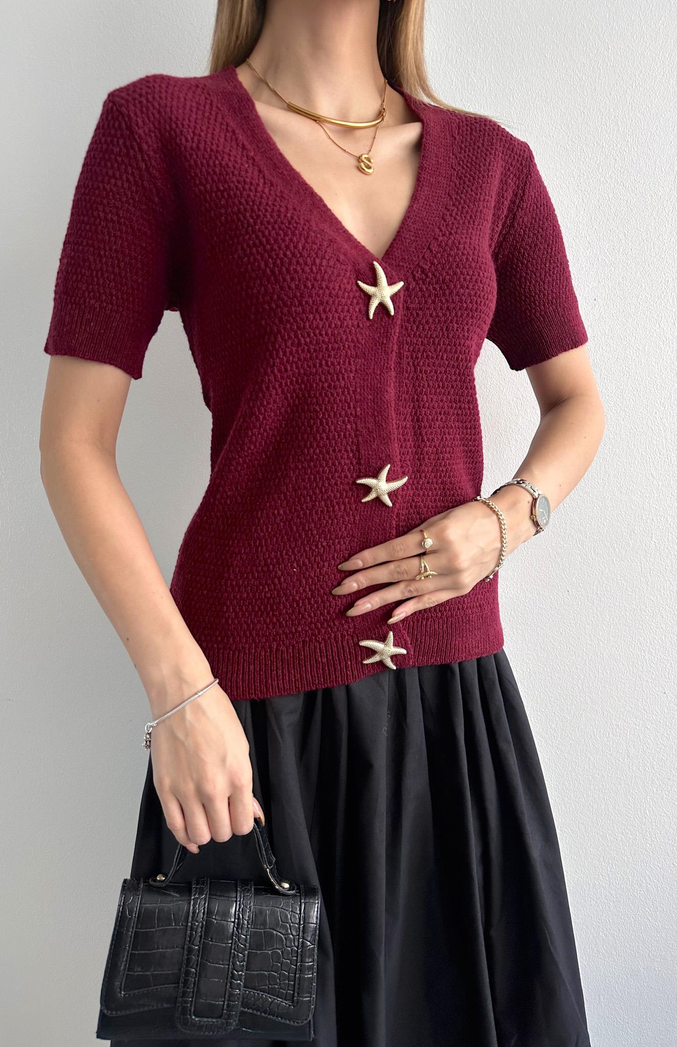 Deniz Yıldızı Cıtcıtlı Hırka BORDO