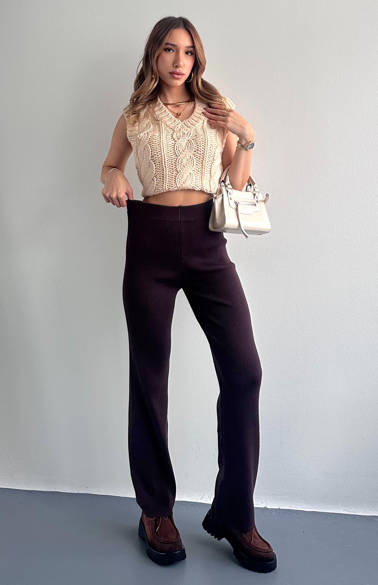Efektli Triko Pantolon KOYU KAHVE (108-2276)