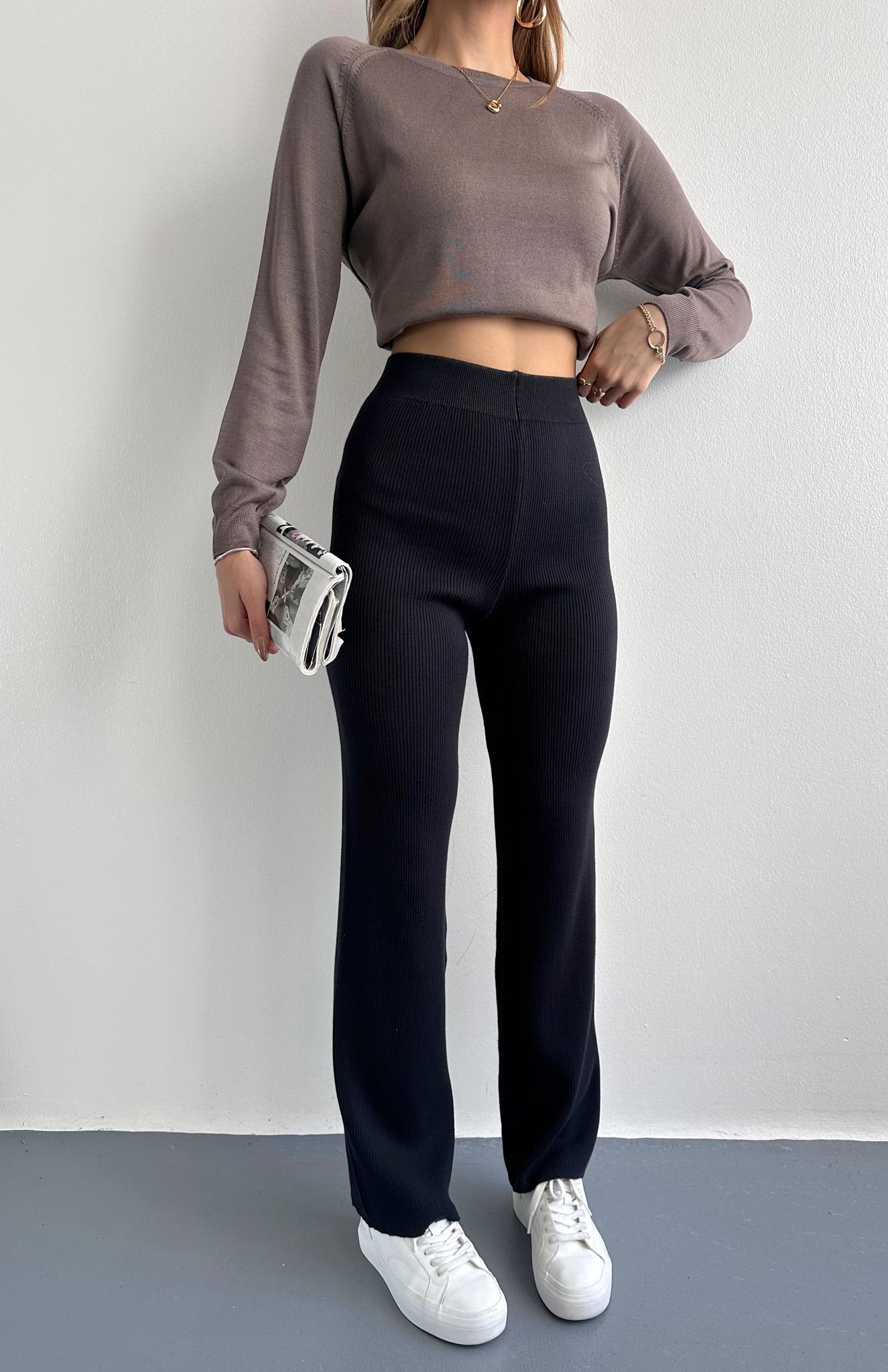Efektli Triko Pantolon KOYU KAHVE Efektli Triko Pantolon SİYAH