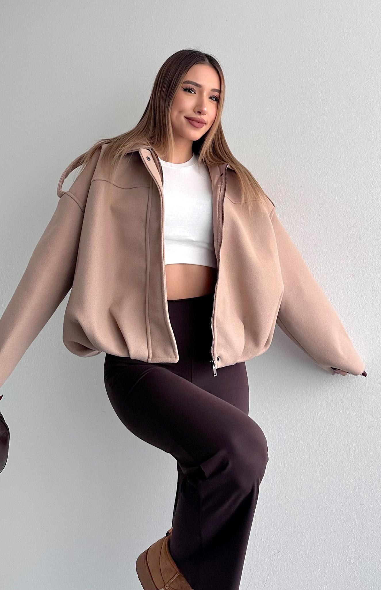 Fermuarlı Apoletli Balon Etekli Kaşe Mont BEJ