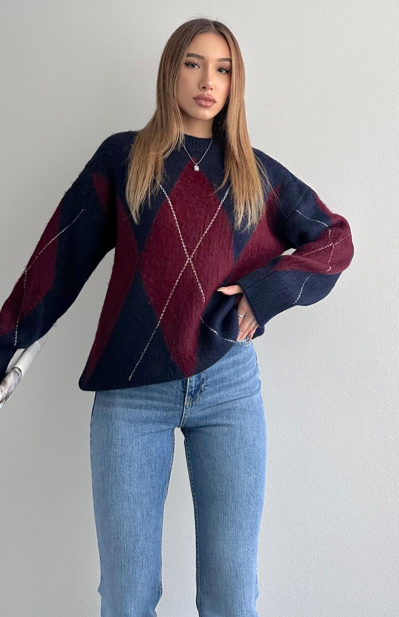 Geniş Baklavalı Kazak KAHVERENGİ Geniş Baklavalı Kazak LACİ. BORDO