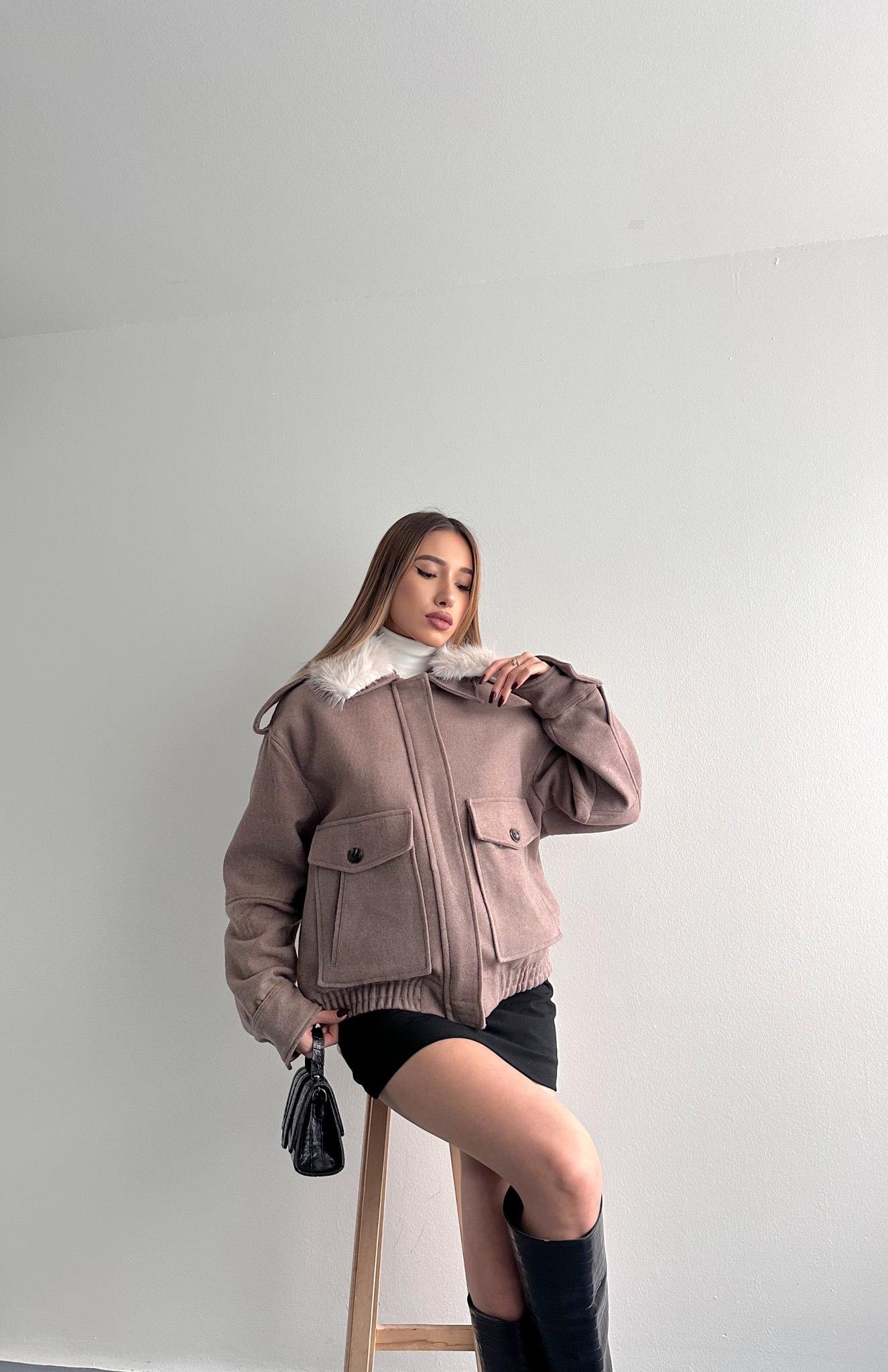 Kaşe Yaka Kürklü Mont VİZON Kaşe Yaka Kürklü Mont TAŞ