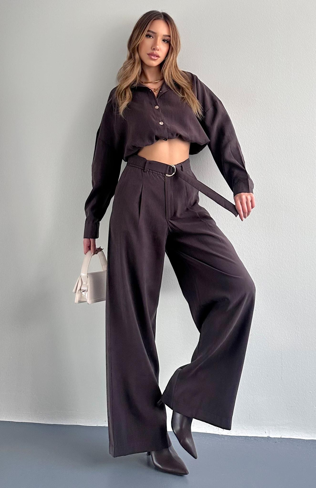 Kemer Detaylı Plazzo Pantolon KAHVERENGİ