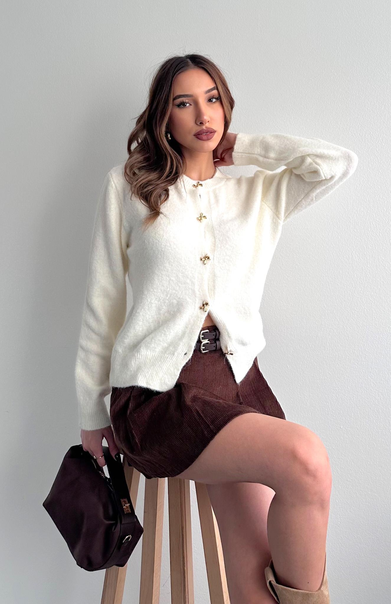 Kurdele Gold Düğmeli Top Hırka EKRU (108-2537)