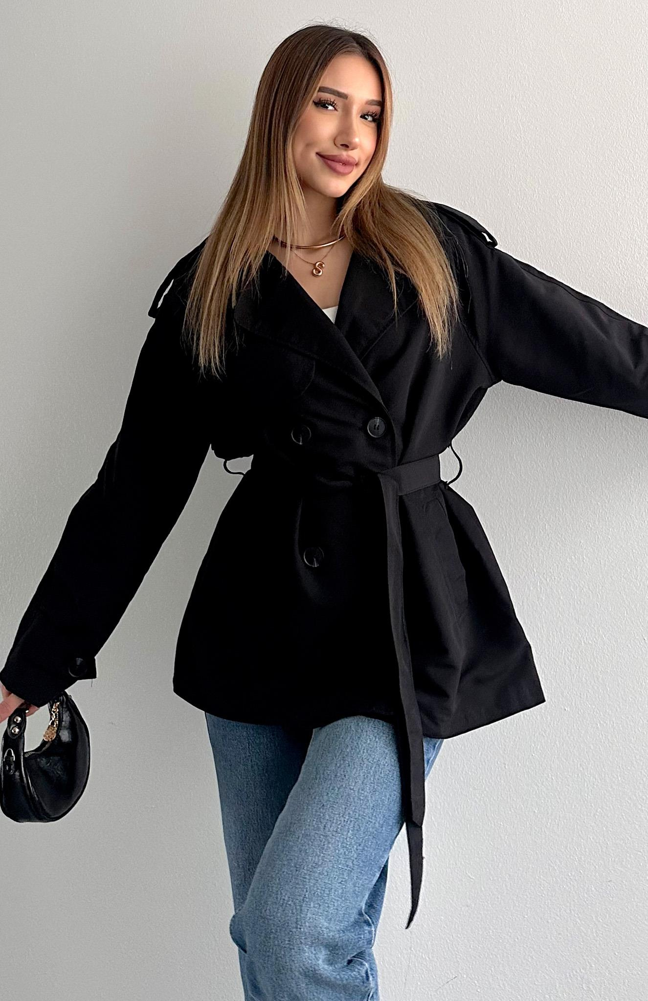 Kuşak Kemerli Trençkot SİYAH