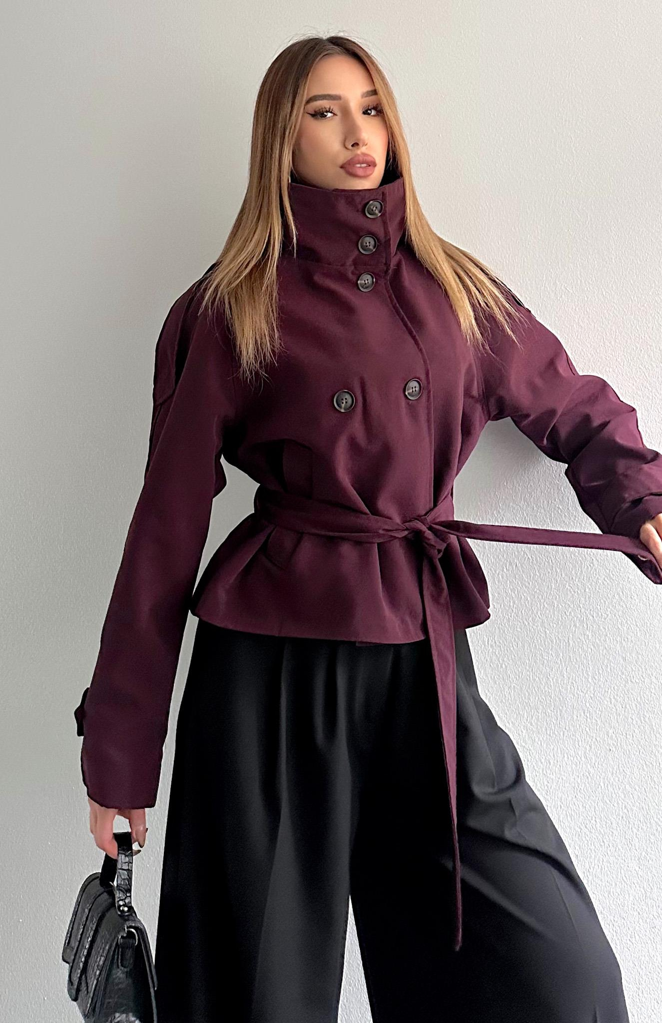 Ön Düğmeli Kısa Trençkot MÜRDÜM (088-580510)