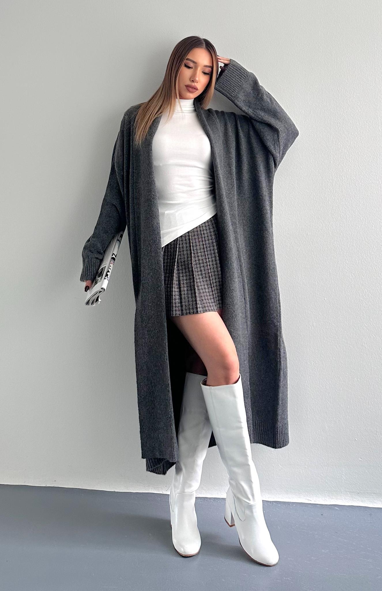 Önü Açık Şal Yaka Hırka ANTRASİT