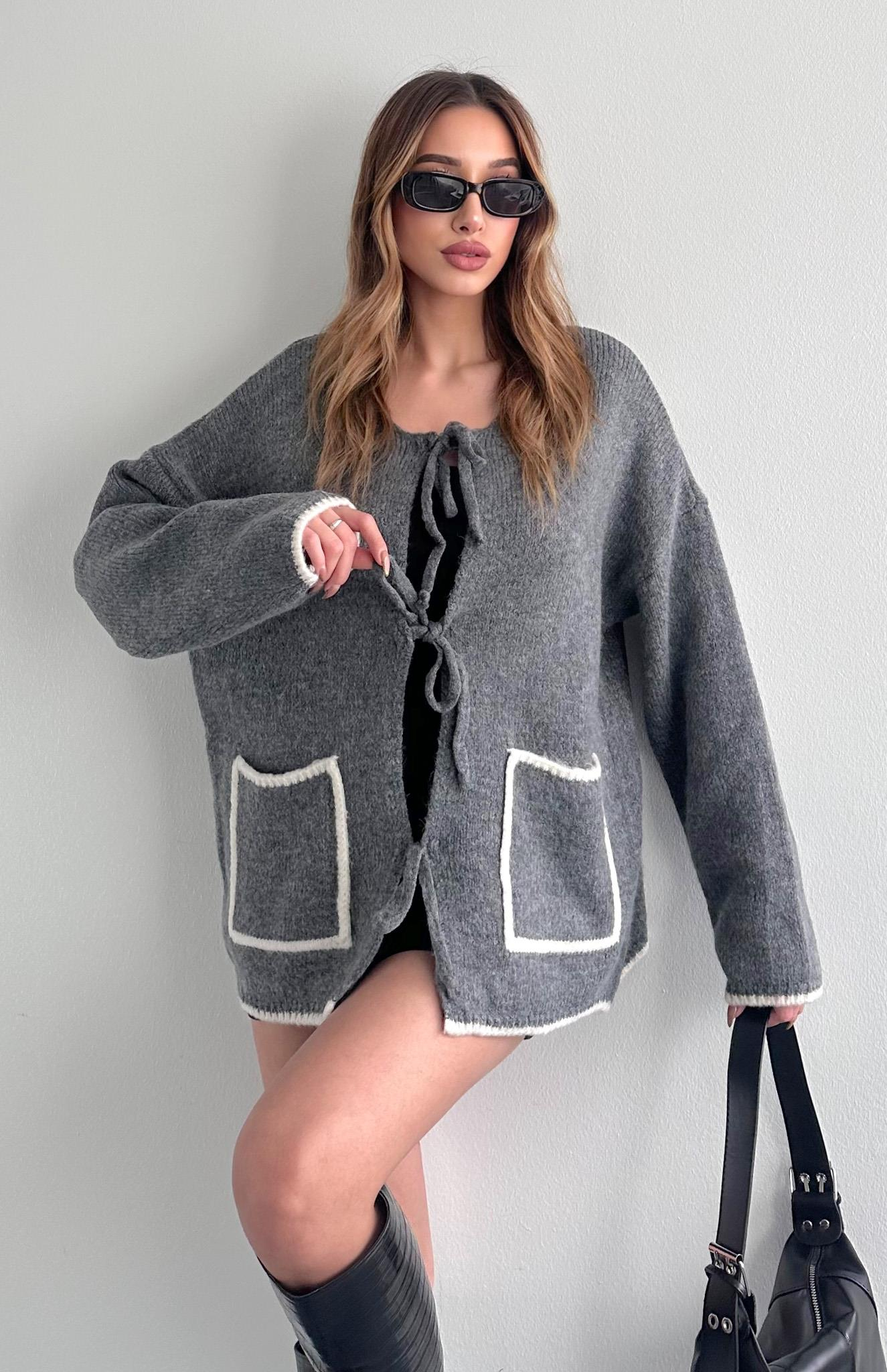 Renkli Cepli Bağcıklı Hırka ANTRASİT