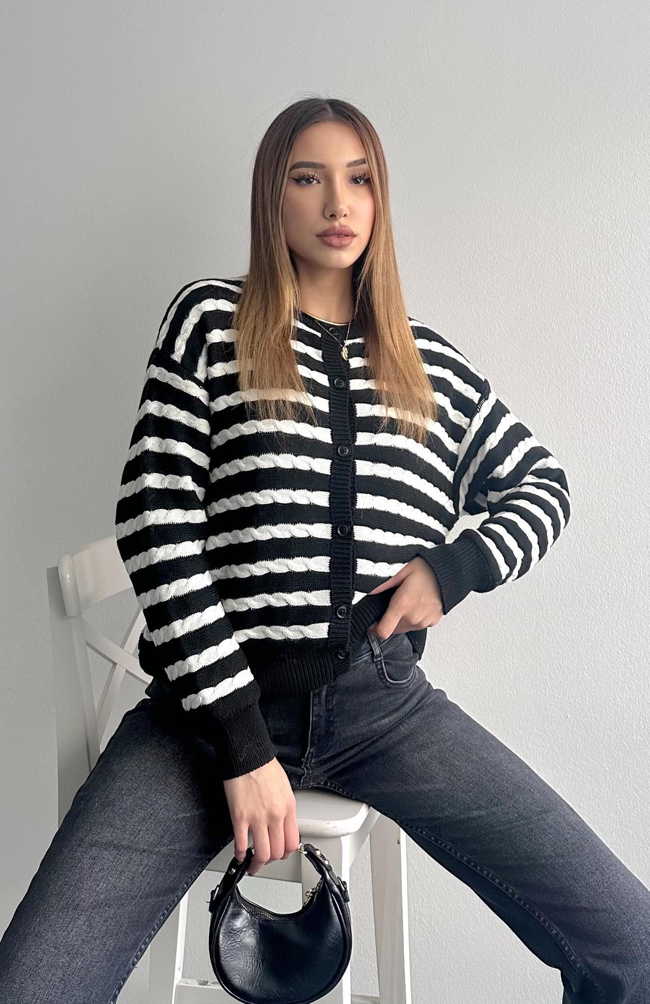 Şaç Örgülü Hırka SİYAH (108-2504)