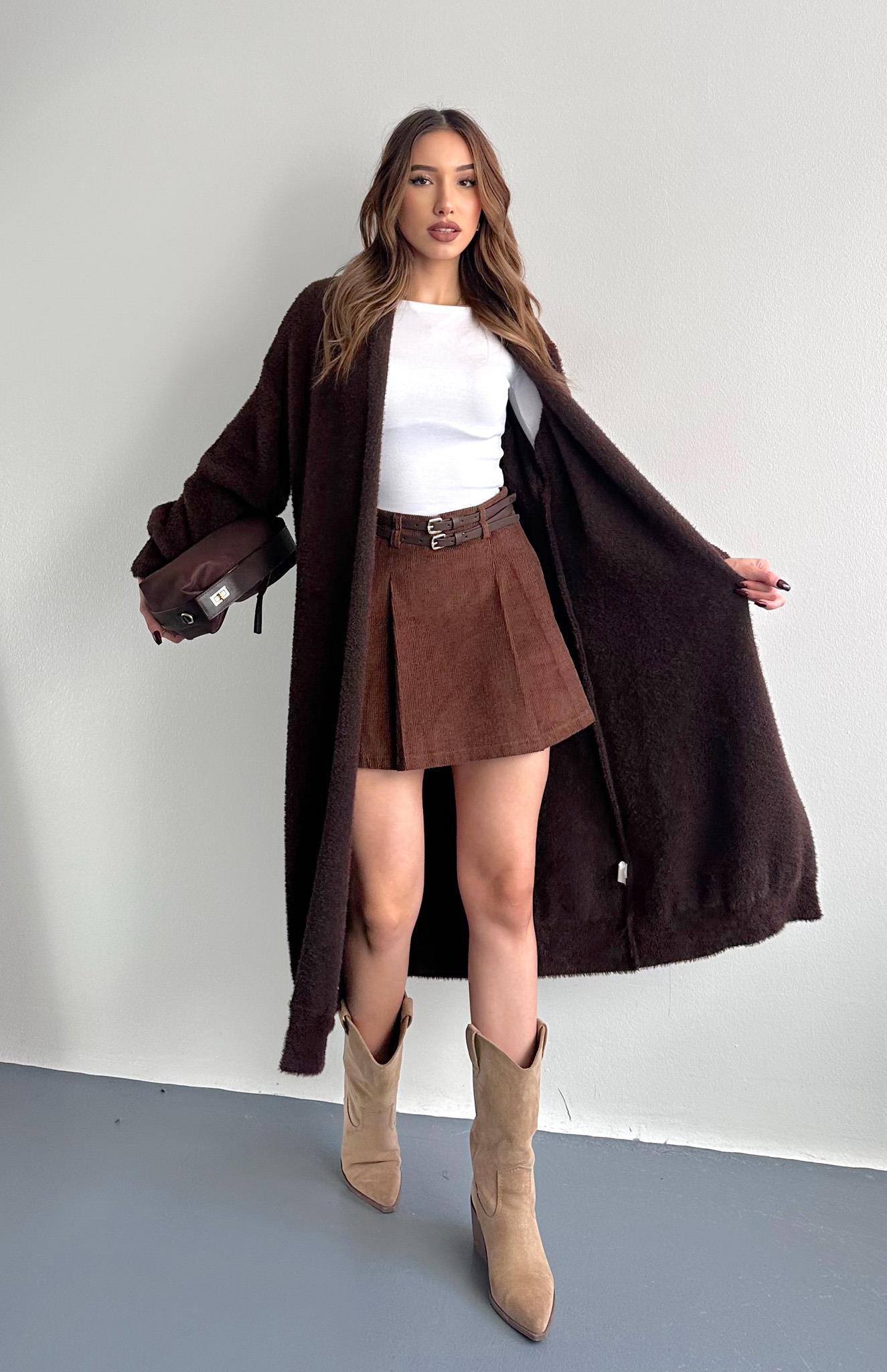 Tam Boy Yumoş Hırka KAHVERENGİ